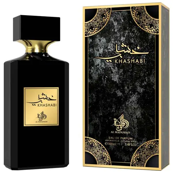 Khashabi Perfume by Al Wataniah is a fragrance for women and men. The top notes are Cinnamon, Agarwood (Oud) and Nutmeg; the middle notes are Jasmine and Sandalwood; the base notes are Musk, Amber, Guaiac Wood, Cedar and Vanilla.
